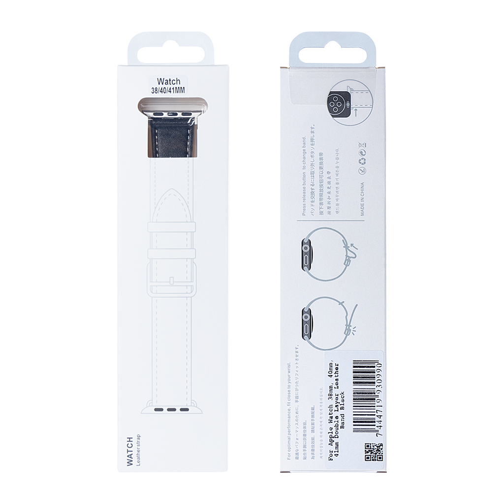 For Apple Watch 38mm, 40mm, 41mm Double Layer Leather Band Black