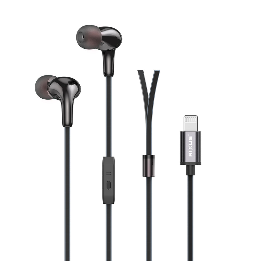 Rixus RXHD27L Stereo In-Ear Lightning Wired Earphone Black