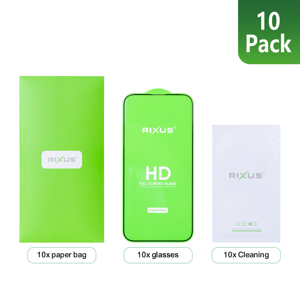 Rixus For iPhone 16 Tempered Glass Curved Edge (10-Pack)
