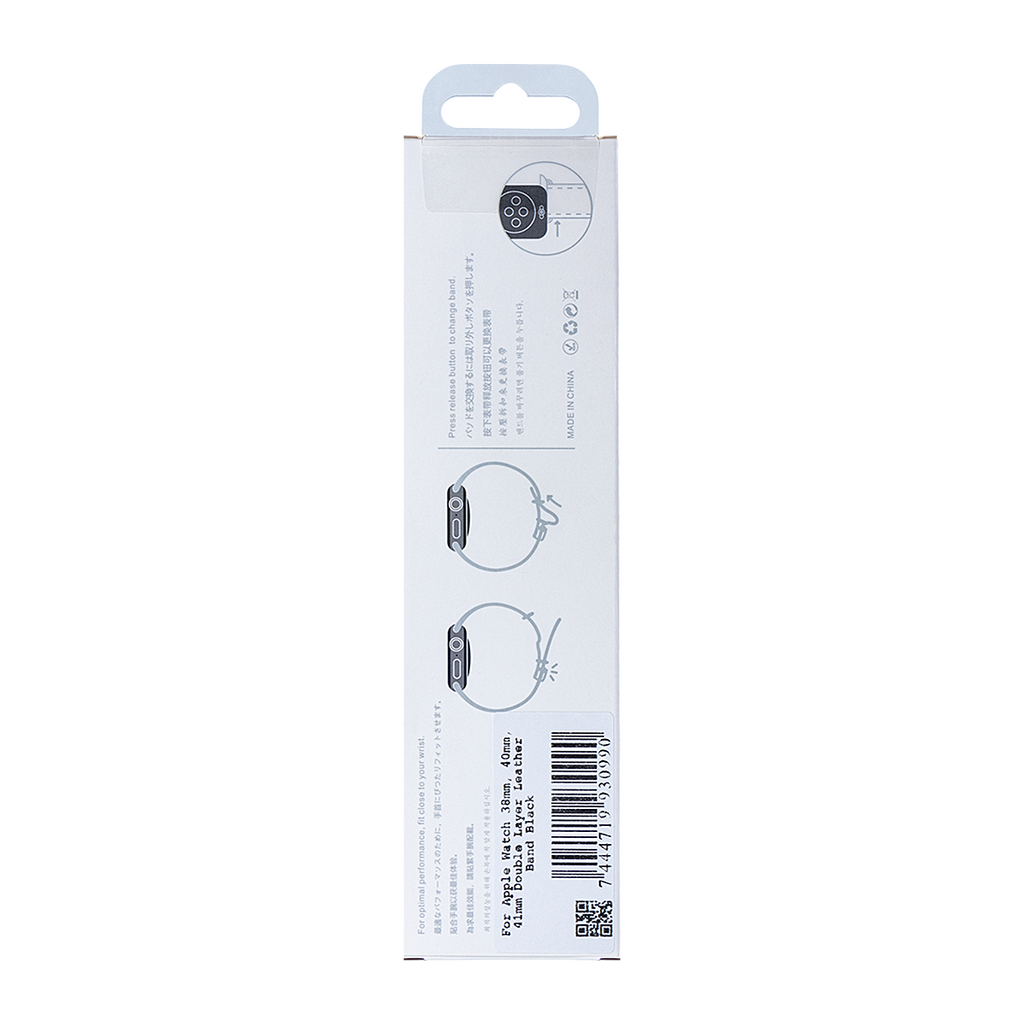 For Apple Watch 38mm, 40mm, 41mm Double Layer Leather Band Black