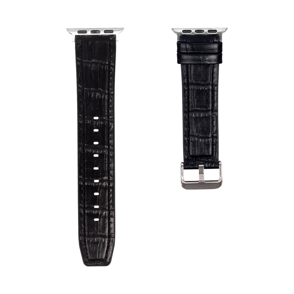 Silicone And Leather Band Alligator Grain For Apple Watch 38mm, 40mm, 41mm Black Retail Box
