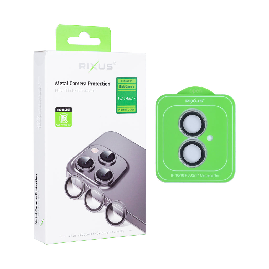 Rixus Metal Shield Camera Tempered Glass For Apple iPhone 16, 16 Plus, 17 Green