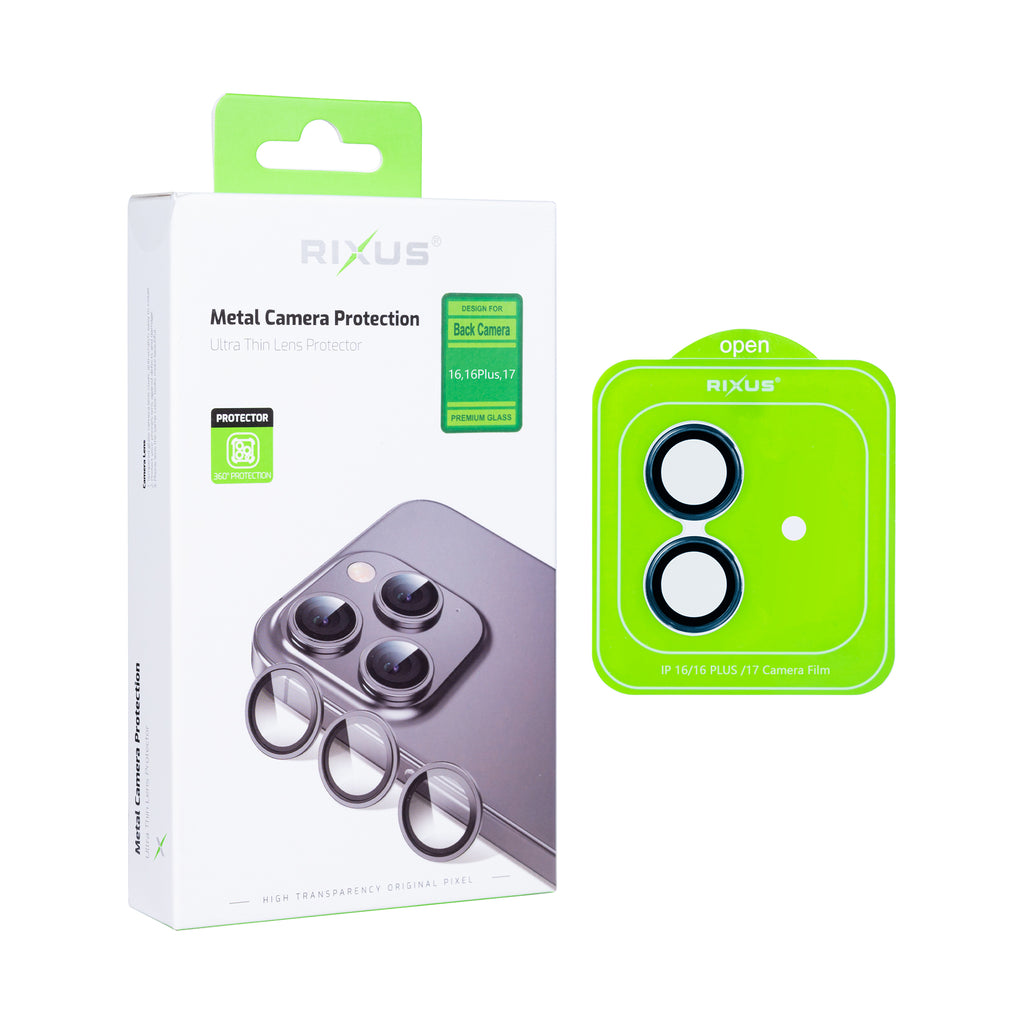 Rixus Metal Shield Camera Tempered Glass For Apple iPhone 16, 16 Plus, 17 Blue