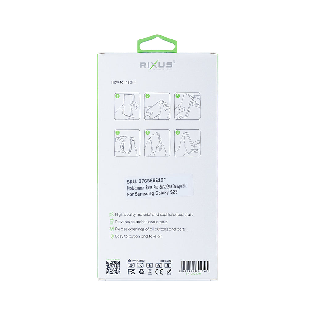 Rixus Anti-Burst Case For Samsung Galaxy S23 S911B Transparent