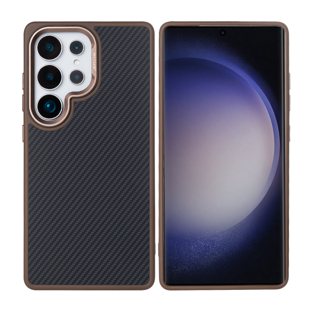 Rixus Mag Carbon With MagSafe For Samsung Galaxy S25 Ultra S938B Brown