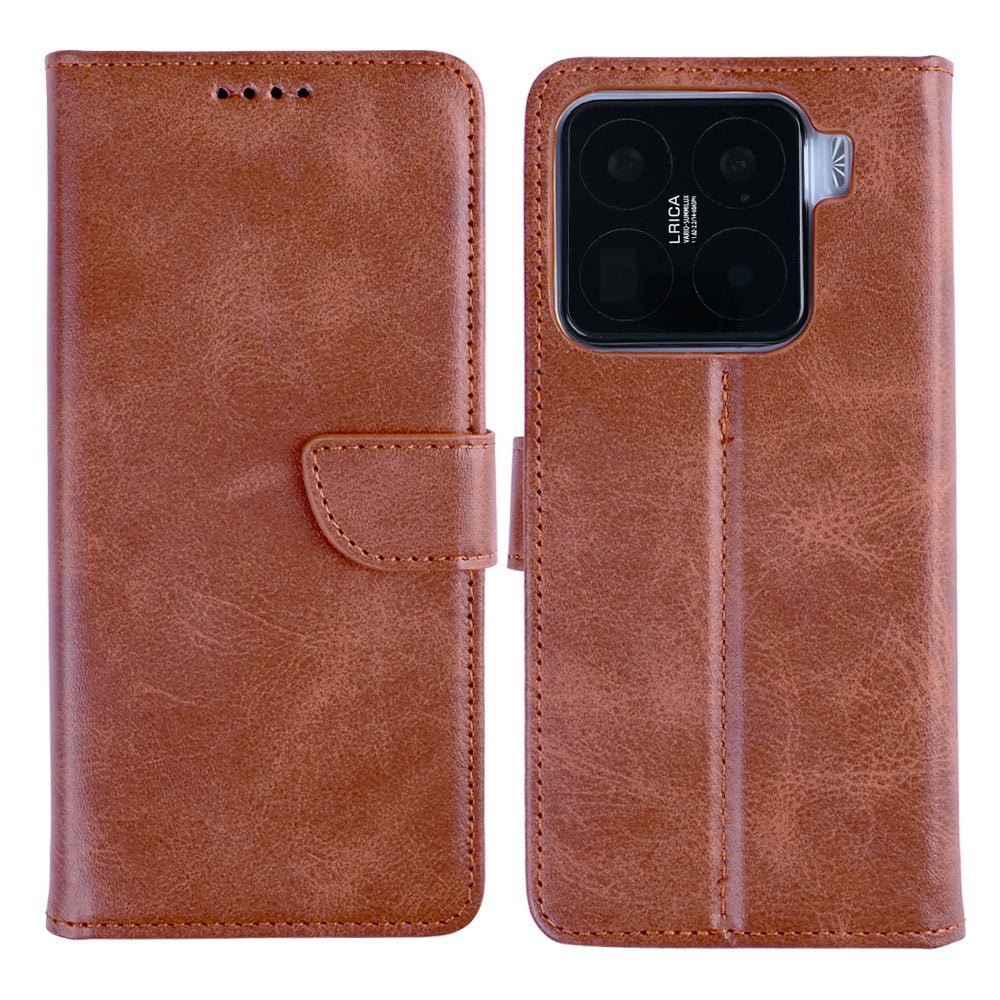 Rixus Bookcase For Xiaomi 15 Pro Brown