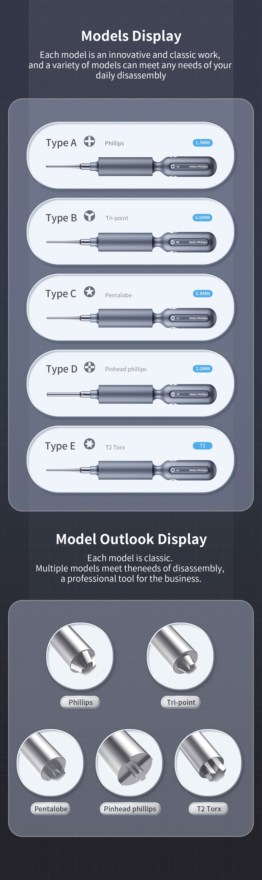 High precision adaptive screwdriver set, tridimensional screwdriver bit. Unscrew and tighten the small screws faster.