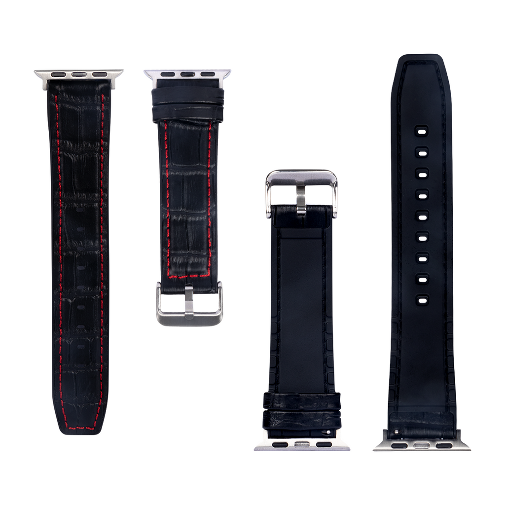 Silicone And Leather Band Alligator Grain For Apple Watch 38mm, 40mm, 41mm Black, Red Retail Box