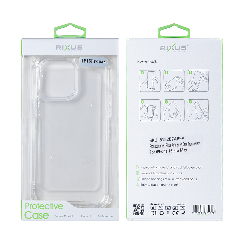 Rixus Anti-Burst Case For Apple iPhone 15 Pro Max Transparent