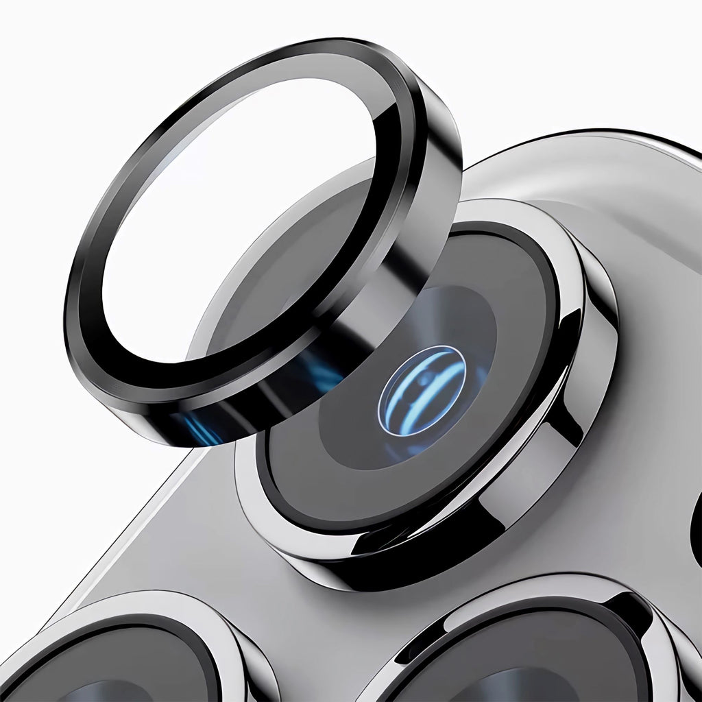 Rixus Metal Shield Camera Tempered Glass For iPhone 16, iPhone 16 Plus and iPhone 17 in the color Purple.